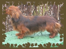 Langhaarzwergteckelrüde rot mit Deckhaar